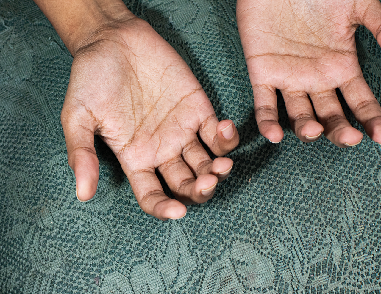 Each person photographed after describing where they physically feel racism - cold hands, sweaty palms, heavy thud in the chest. Often labeled anxiety, many described it as suppressed anger. The feeling of being unable to respond without risking livelihood. Inspired by a friend whose employer mimicked the sound of a whip while giving an order. He needed the job to pay for college. He stayed silent.